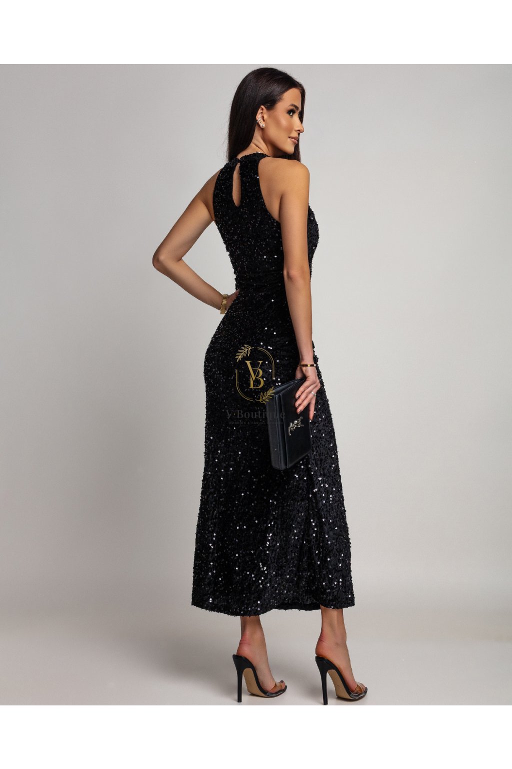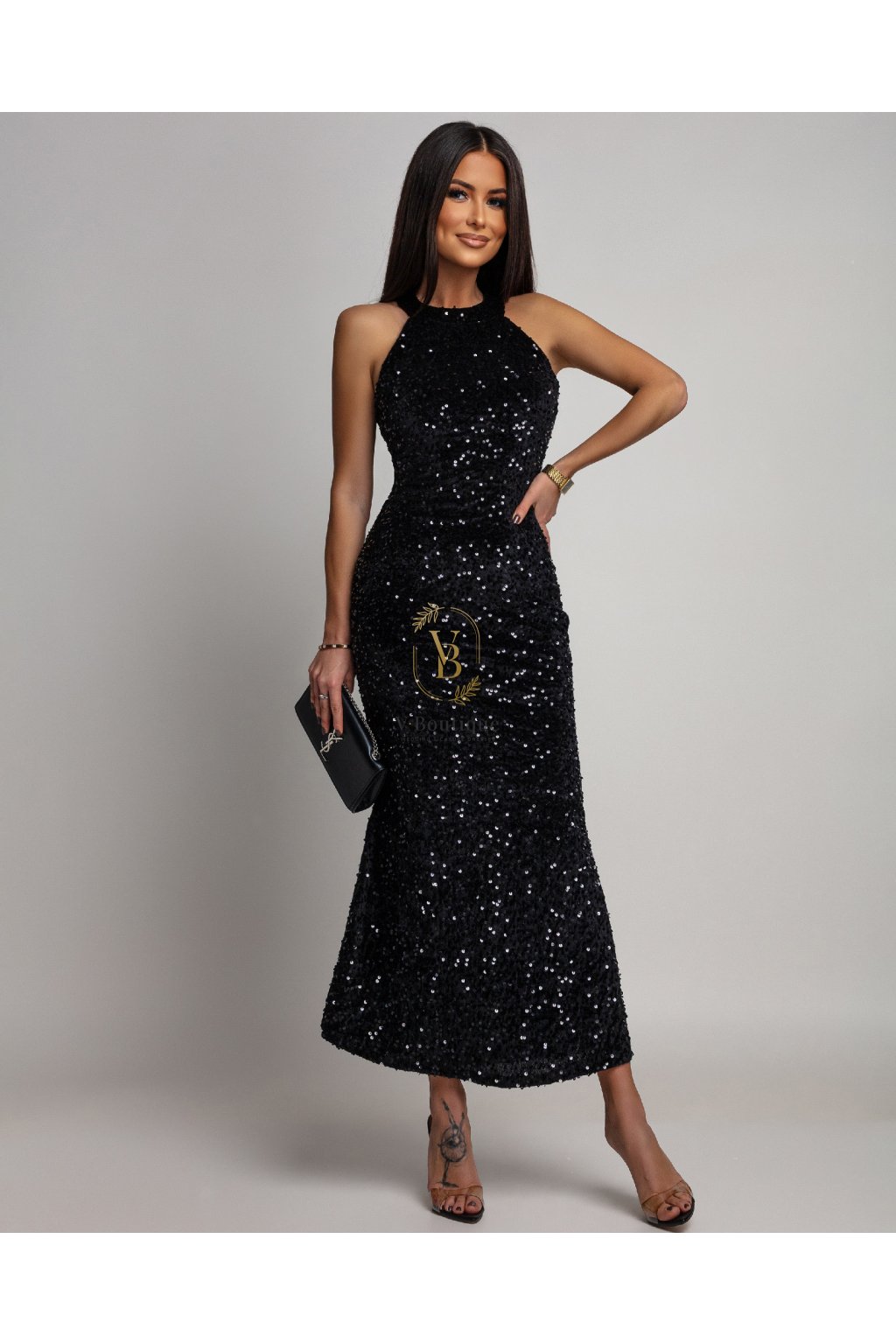 Čierne flitrované spoločenské šaty s halter výstrihom