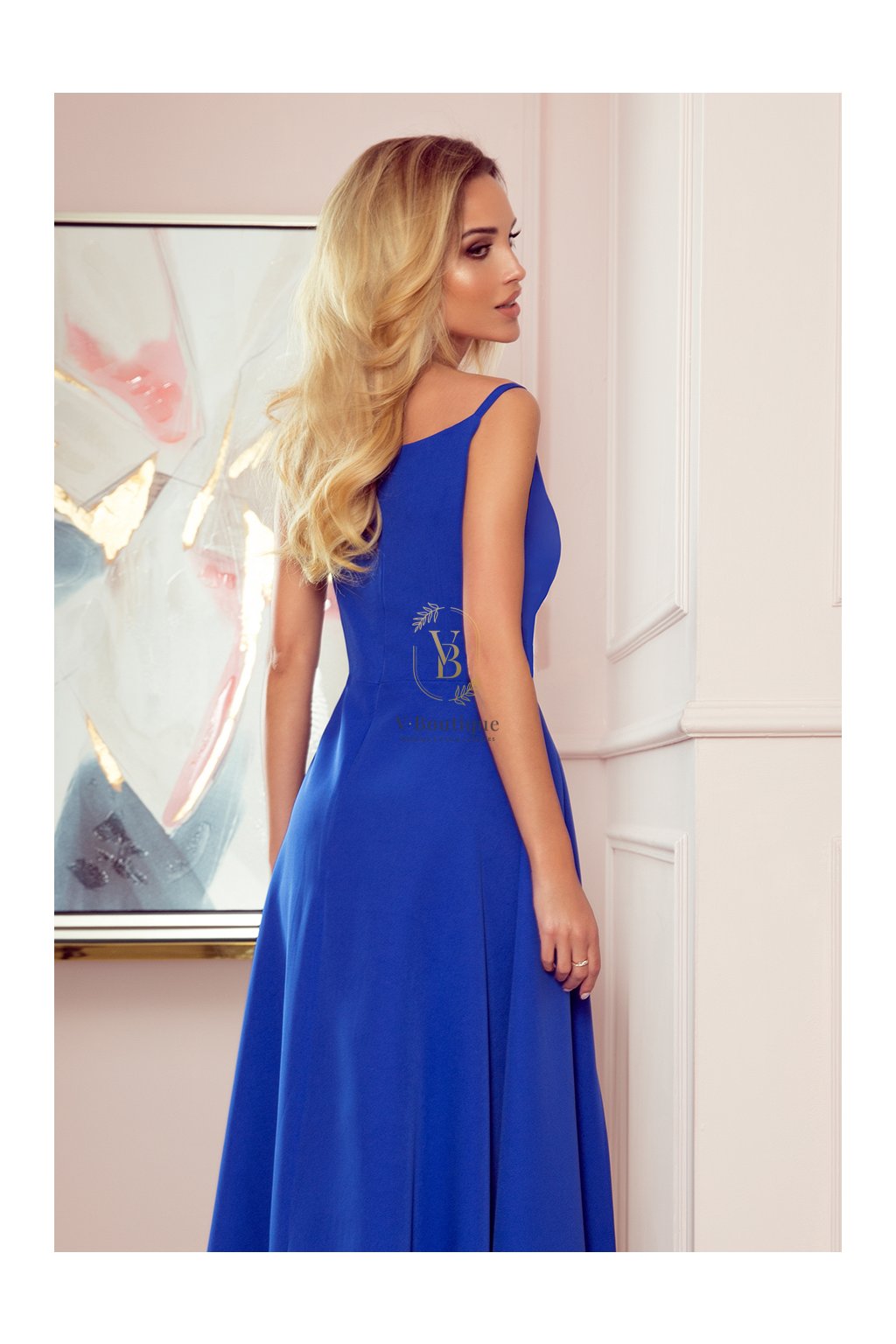 Dlhé kráľovsky modré spoločenské šaty s ramienkami
