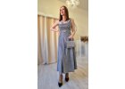 Elegantné tmavošedé dlhé spoločenské šaty s čipkou a šifónovou sukňou
