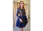 Tmavomodré krátke spoločenské šaty s výšivkou